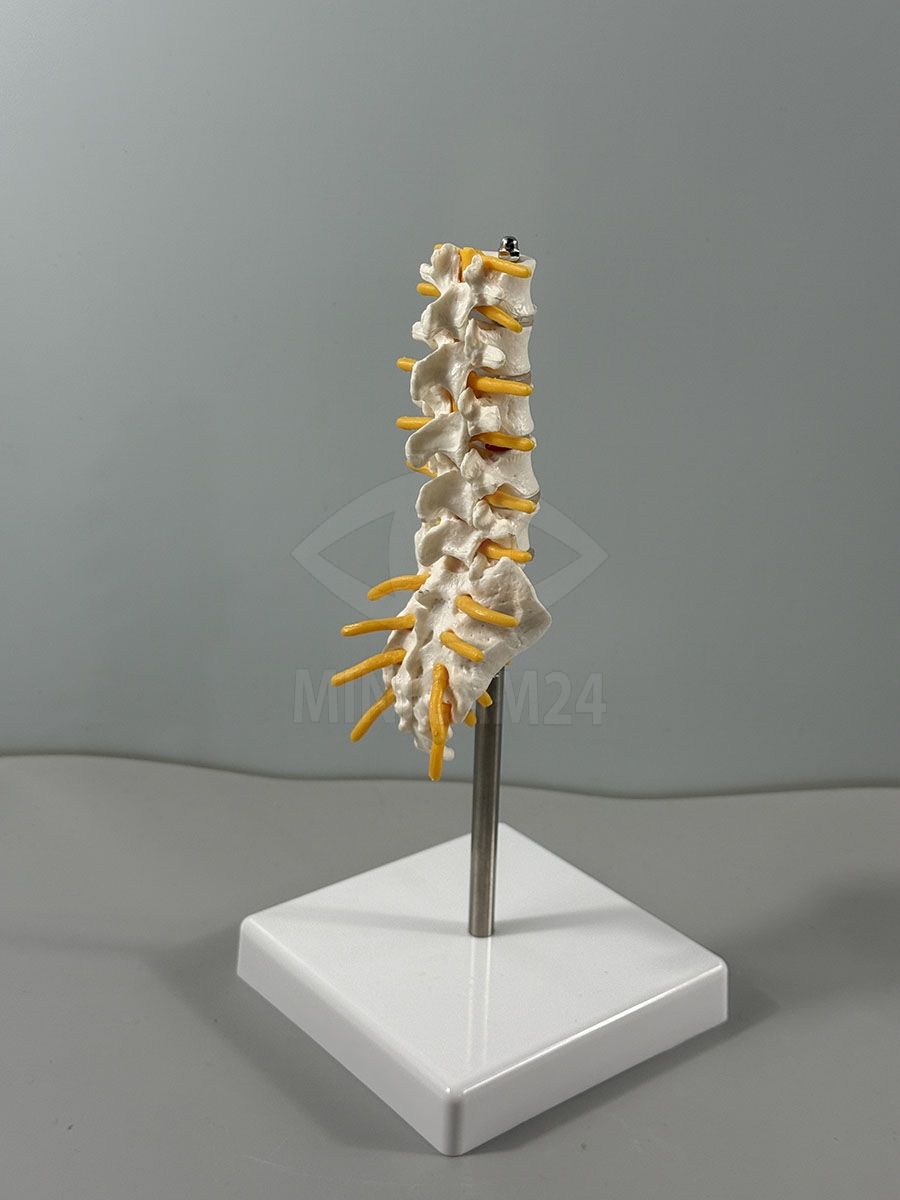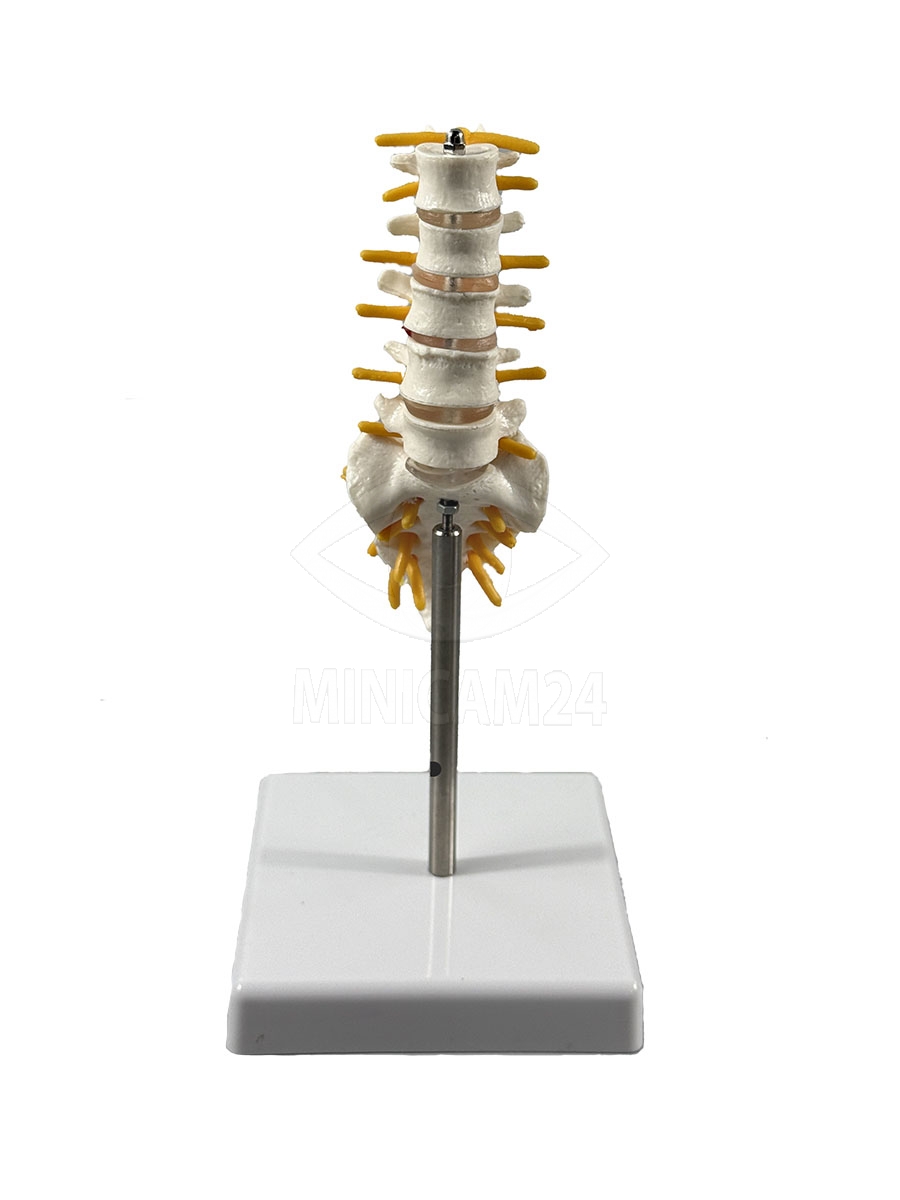 Дополнительной особенностью модели является наличие имитации спинного мозга и спинномозговых нервов. Это делает её подходящей для демонстрации нейроанатомических связей и патологических процессов, связанных с корешковыми синдромами или травмами нижнего отдела позвоночника.