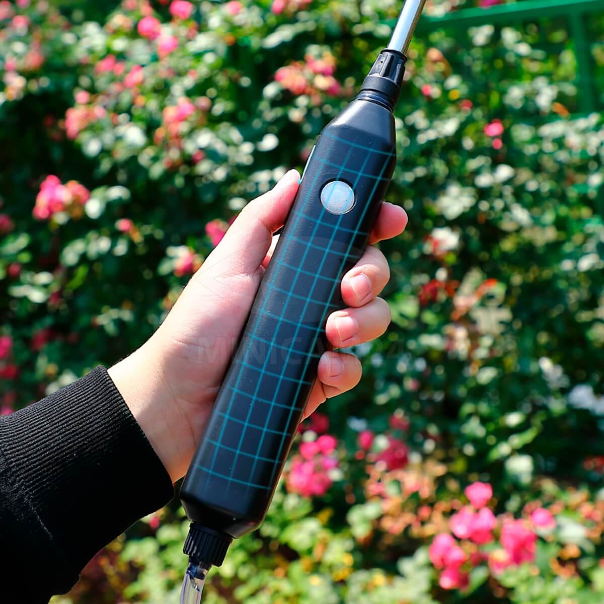 • Компактный аккумуляторный опрыскиватель позволяет распылять жидкость из любой ёмкости или водоёма.